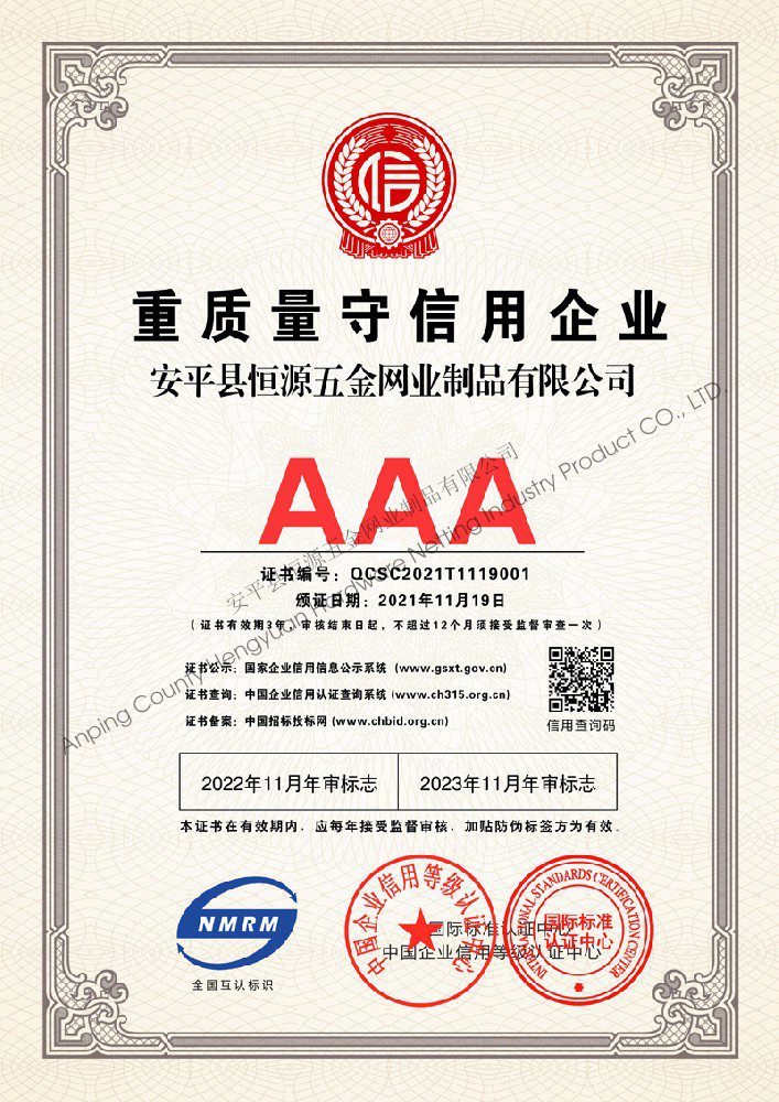 多年來,安平縣恒源五金網業制品有限公司堅持“科技興企、質量立業”的經營理念和“誠心為本、客戶至上”的合作宗旨,優化生產工藝,打造優質產品,提供完善的服務,受到國內外客戶的一致好評,產品行銷全國各地,并出口美國、德國、韓國、日本、臺灣等國家和地區。